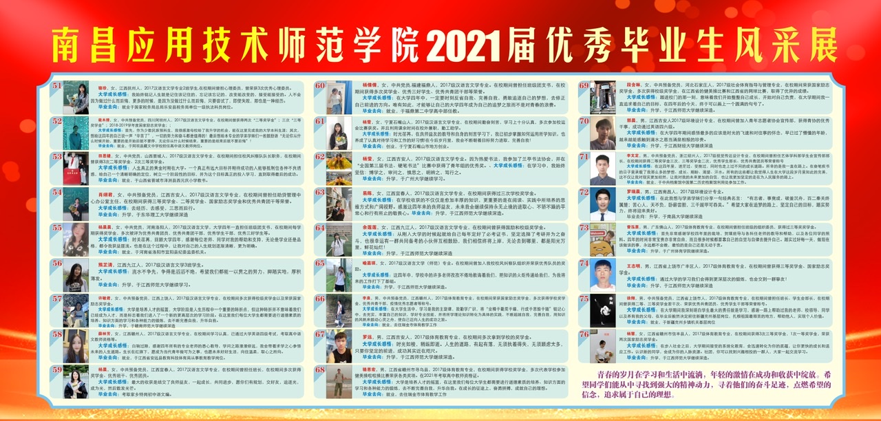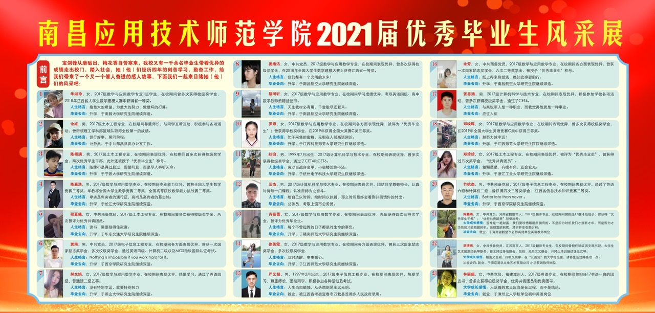 先进典型 优秀毕业生 优秀学生风采 优秀教职工 您现在的位置是:首页 > 先进典型 > 优秀毕业生 学校2021届优秀毕业生 管理员2021-07-212731 下一篇 青春榜样力量||优秀毕业生——葛文斌