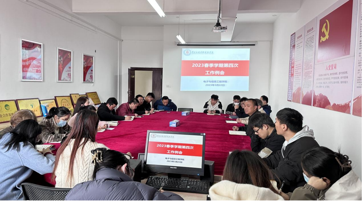 3月22日,学院在会议室1407召开2023春季学期第四次工作例会,全体教职工参加了会议,会议由院长邹水龙主持。