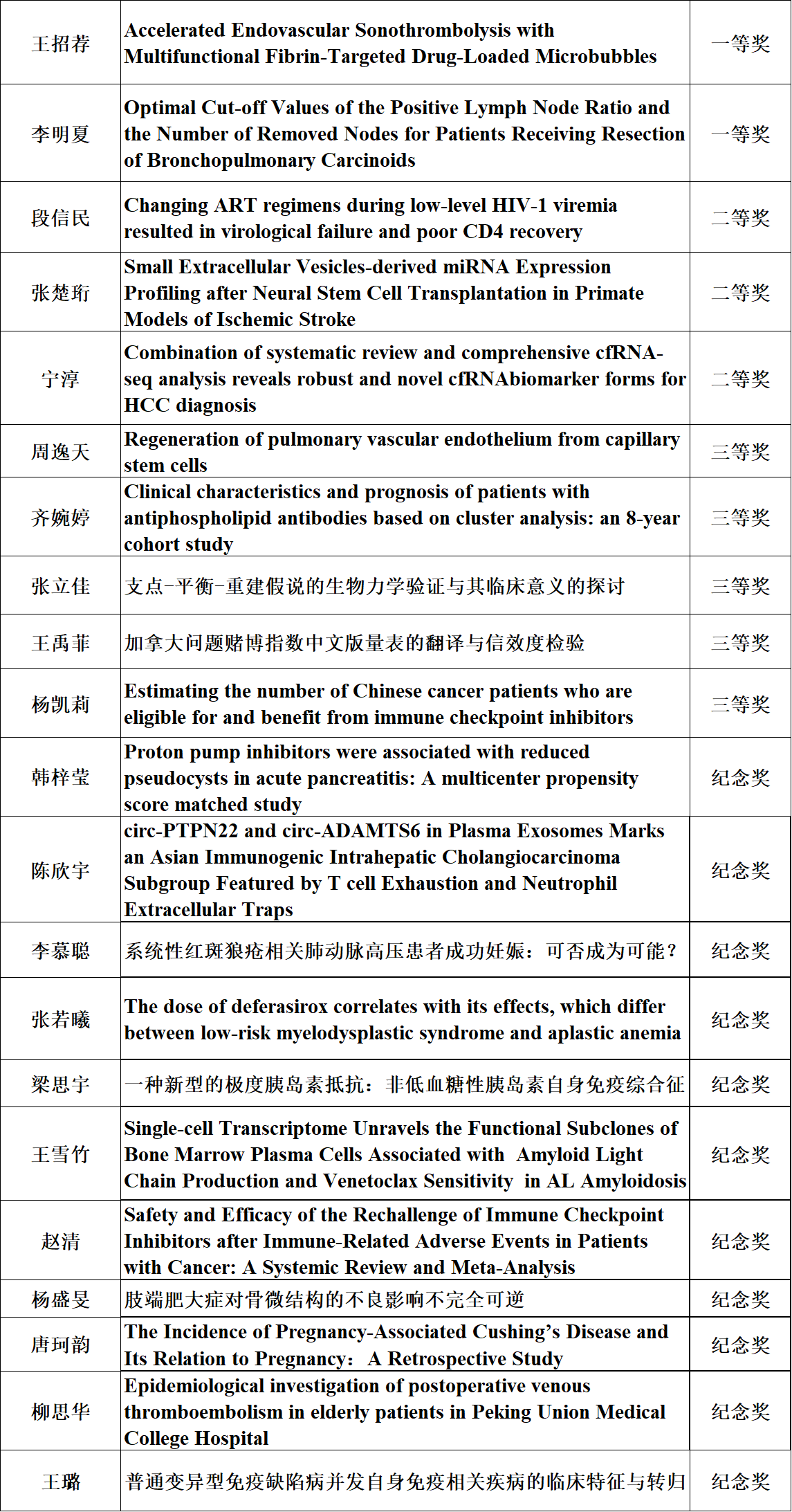 经过专家和学生共同评选,教务处汇总统计,此次墙报展示活动共评选出一等奖2项,二等奖3项,三等奖5项和纪念奖11项。其中临床八年制2015级王招荐的墙报作品“Accelerated Endovascular Sonothrombolysis with Multifunctional Fibrin-Targeted Drug-Loaded Microbubbles”和李明夏的墙报作品“Optimal Cut-off Values of the Positive Lymph Node Ratio and the Number of Removed Nodes for Patients Receiving Resection of Bronchopulmonary Carcinoids”获得了一等奖。