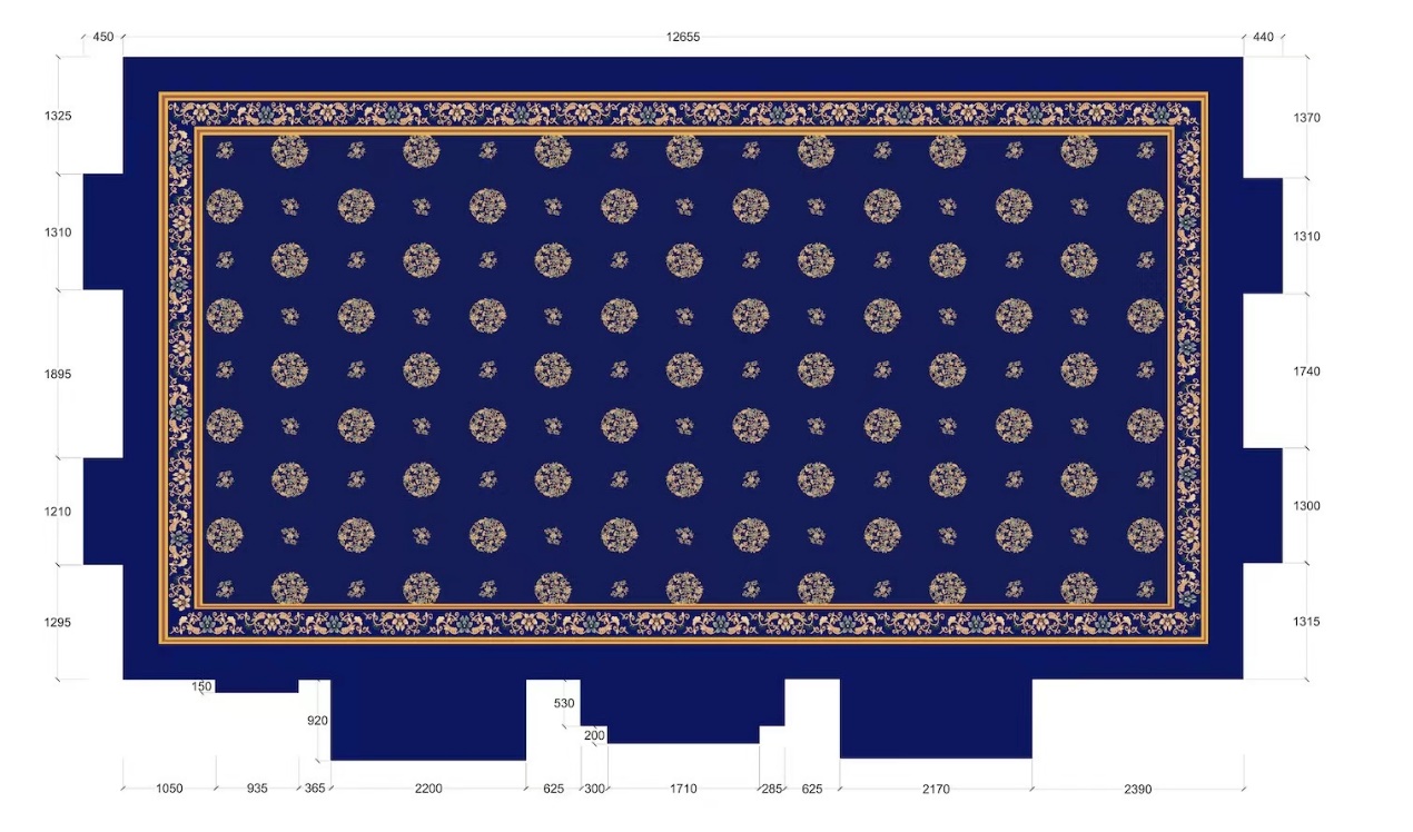 第一个会议室满铺地毯尺寸图(仅供尺寸示意,花色需重新设计)