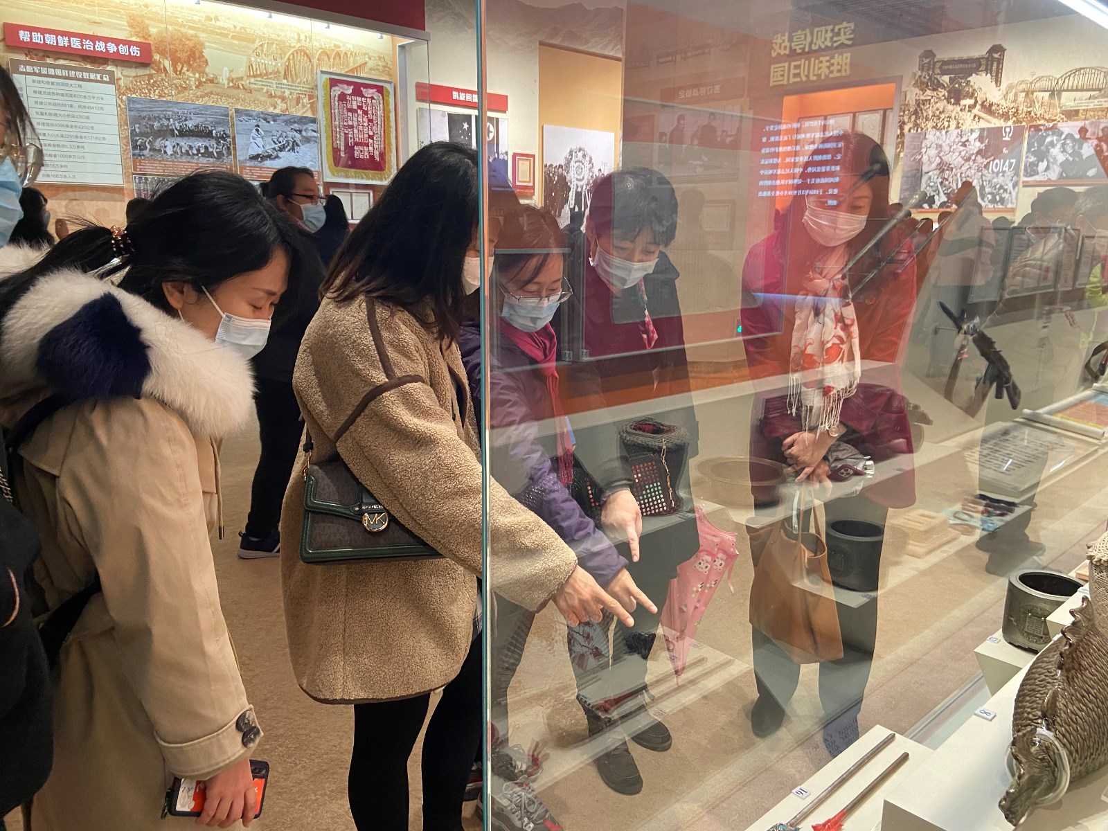 在陈京立书记讲话后,党员同志们步入展厅观展。一进展厅,满目的红色部队番号旗帜,将大家的思绪带入到艰苦卓绝又波澜壮阔的抗美援朝伟大历程当中。大家跟随讲解员的脚步,认真聆听战争的情形与英雄的故事,在“正义担当 决策出兵”、“运动歼敌 稳定战线”、“以打促谈 越战越强”、“实现停战 胜利归国”几个板块的场景中穿梭,看着展览中陈列的实物、悬挂的照片,经历了一次又一次的精神洗礼,脑海中“最可爱的人”的形象愈发清晰。