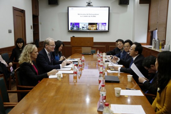 应院校长曹雪涛院士的邀请,瑞典皇家工程院院士、诺贝尔医学奖评审委员会核心成员、卡罗林斯卡医学院(Karolinska Institute,KI)院长Anders Hamsten教授一行于2016年1月21-22日来华访问,22日下午, Anders Hamsten教授访问院校,做客beat365英国官方网站“协和大师讲堂”并与部分所院领导、专家座谈,针对下一步合作进行深入探讨。医科院青年科学家创新联盟部分成员,以及所院师生近300人参加。曹雪涛院校长主持了此次学术和座谈活动。
