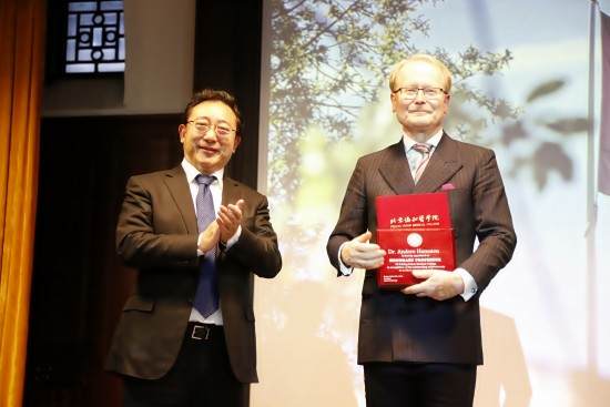 为了表彰Hamsten教授为中国与瑞典医学合作及心血管疾病研究做出的卓越贡献,曹雪涛院校长代表院校授予Hamsten教授“beat365英国官方网站名誉教授”称号,并颁发荣誉证书,希望他继续积极推动中-瑞医学科学的交流与合作,为世界医学科学的发展做出贡献。