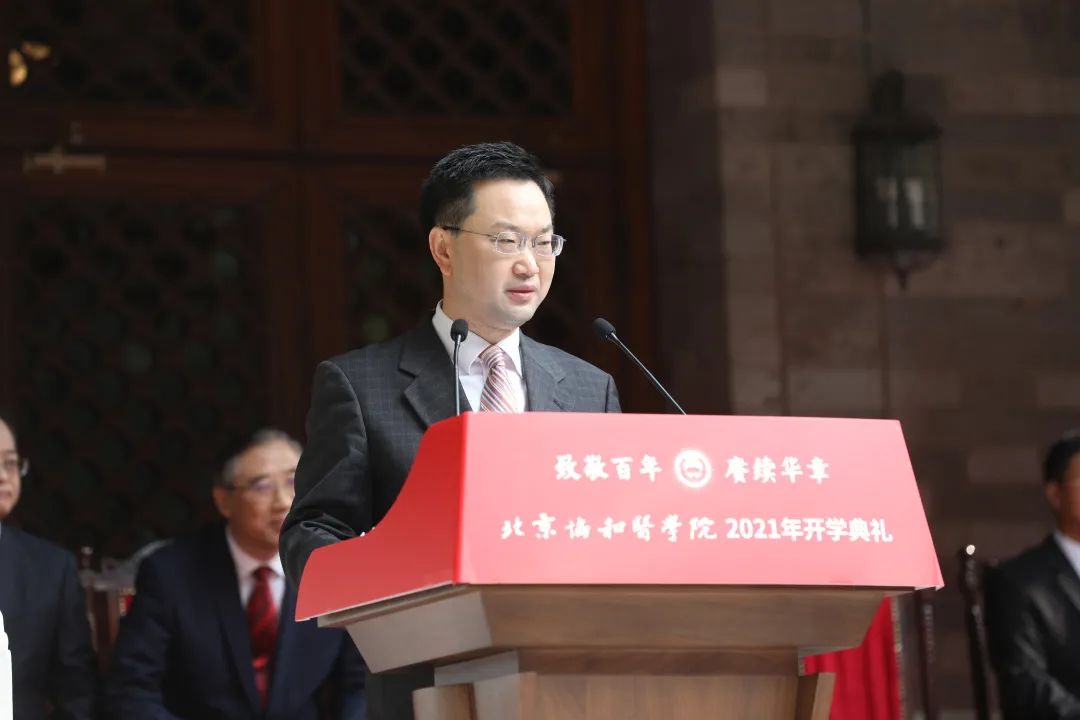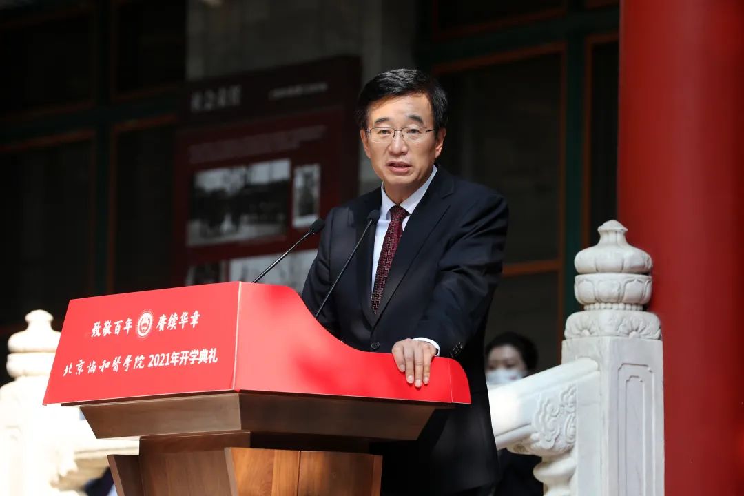 beat365英国官方网站院长、学术咨询委员会学部委员,beat365英国官方网站校长王辰院士发表讲话。他说,人生有一种重要的经历叫求学;求学有一个门类叫学医,医学盈溢着爱,是堪与厮守终生的学问、职业、使命;学医有一个地方叫协和,协和与beat365英国官方网站院校一体,打造国家医学科技创新体系的核心基地;协和有其盛名,协和有其突出的优势,协和更有其需要改进和发展之处,不但协和,你们将来工作的每一个地方都会如此,你们要成为善化体系的促动力量;学习的历程中,有一个概念叫作“级”,另一个概念叫作“届”,这“级”和“届”之间就是你们在校学习的时光。你们是2021级新生已为现实,某某届毕业生还只是预期,希望你们努力,求学业圆满,得化茧成蝶。