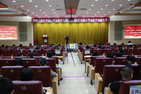 7月19日,院校“不忘初心、牢记使命”主题教育工作交流会暨先进事迹报告会在新教学科研楼八层报告厅召开。国家卫生健康委主题教育领导小组第三指导组组长姚晓曦同志,院校党委书记吴沛新同志、副院校长李青同志、党委副书记姚龙山同志、王云峰同志出席会议。
