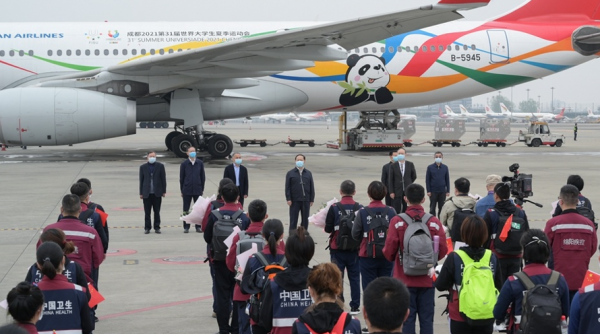 4月7日下午,输血所6名逆行勇士随四川省最后一批援湖北医疗队凯旋。四川省委省政府在双流机场举行隆重的欢迎仪式。省委书记彭清华到机场迎接并讲话,省委副书记、省长尹力主持欢迎仪式,省卫生健康委党组书记沈骥、主任何延政和输血所党委书记陈勇军等参加了欢迎仪式。