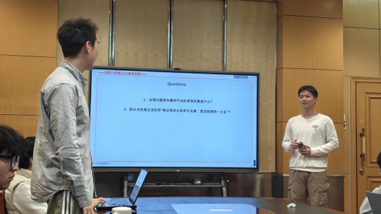 会上,支部书记农张蔚同志带领全体党员学习党的二十届四中全会公报要点,回顾“十四五”时期取得的重大成就,展望“十五五”时期的发展目标。刘俊希、郭诚成两位同志分别围绕“推进祖国统一大业”和“高质量推进国防和军队现代化”作主题发言,并与党员同志们就相关问题展开热烈讨论。大家一致认为,在复杂严峻的国内外形势下,展示军队现代化水平是维持和平、反对侵略的有力方式,祖国的统一大业必定在两岸同胞的共同努力下得到实现。