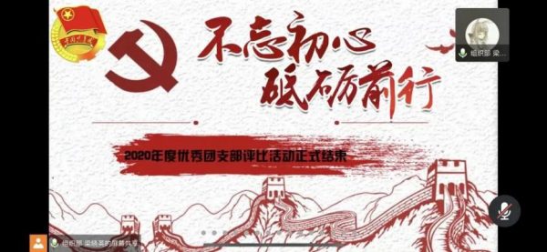本次活动采取线上汇报方式,各团支部对2019年5月~2020年4月支部发展情况进行了精彩的演讲,展示了过去一年中大家丰富多彩的支部活动以及一年来团支部取得的成果。随后,各支部通过提问的方式,相互交流学习。评委在微信群进行打分。在会议进行过程中,组织部干事全程录屏,对精彩瞬间进行了截屏记录。