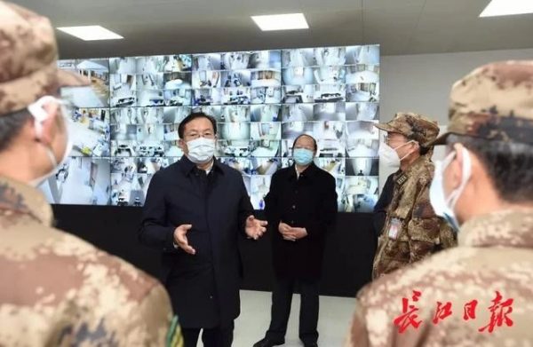 解放军医疗队整建制支援泰康(同济)武汉医院,边改建边收治,为抢救患者生命赢得了不少时间。王忠林与参与救治的部队医护人员交谈,他说,大家响应党中央号召,接管了一个基础条件不完备的医院,为患者及时救治做出了贡献。“有了你们的支持,我们有信心,期待拐点早日到来。”