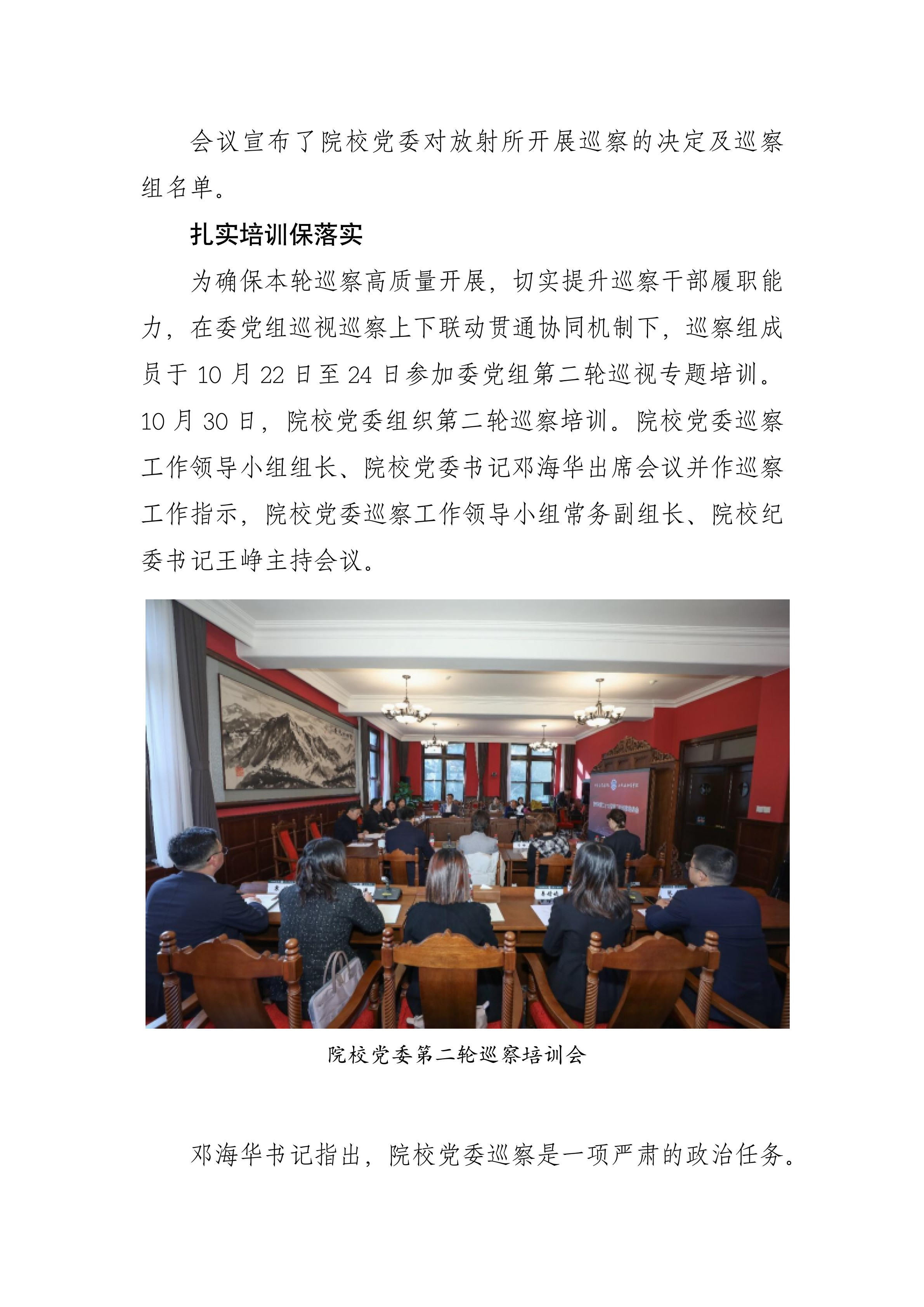 会议宣布了院校党委对放射所开展巡察的决定及巡察组名单。