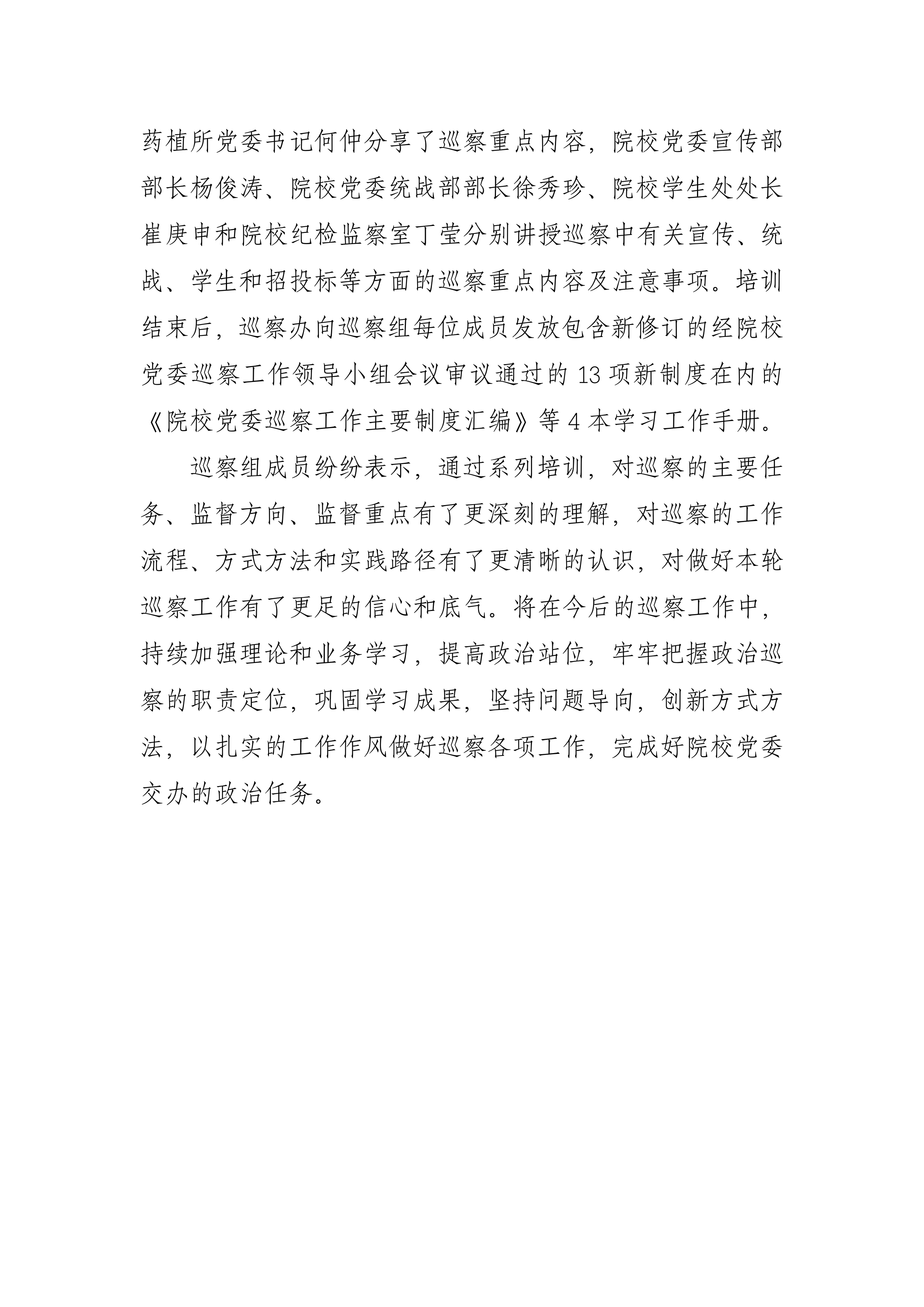 巡察组成员纷纷表示,通过系列培训,对巡察的主要任务、监督方向、监督重点有了更深刻的理解,对巡察的工作流程、方式方法和实践路径有了更清晰的认识,对做好本轮巡察工作有了更足的信心和底气。将在今后的巡察工作中,持续加强理论和业务学习,提高政治站位,牢牢把握政治巡察的职责定位,巩固学习成果,坚持问题导向,创新方式方法,以扎实的工作作风做好巡察各项工作,完成好院校党委交办的政治任务。