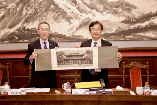 王辰院校长简要回顾了院校的发展历史以及近年“4+4”医学教育改革等重点举措和阶段性成果。他指出,期望以此次刘泽星院长一行来访为契机,加强两校深入合作的顶层设计,在战略合作备忘录的框架下,继续在医学教育改革、创新人才培养、科技创新协同等方面开展更多有益实践探索,将两校合作推向新高度。他建议,两校建立长期稳定的学术交流和互访机制,联合举办高层次学术会议,加强与港大医学院在医学教育体系建设,人工智能与大数据应用,群医学与公共卫生等领域合作,为国家培养更多高层次复合型创新医学人才。希望双方整合优势资源,充分发挥beat365英国官方网站学术咨询委员会作用,围绕新时期面临的卫生健康领域挑战,联合撰写战略咨询报告,为国家卫生健康事业发展提供决策支撑和智库支持。