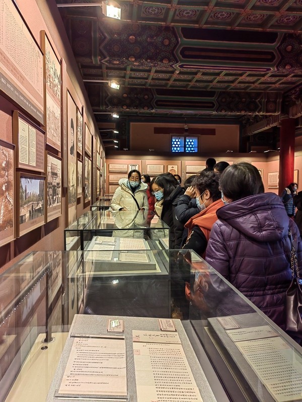 皇史宬是我国现存最完整、历史悠久的皇家档案库,收藏明清皇帝的实录、圣训等珍贵典籍。其建筑沿用秦、汉时期“金匮石室”制度。正殿位于高出地面一米多的石基上,现有金匮32座,匮体内为樟木材质,外面包裹铜皮鎏金,錾刻云龙图案。皇史宬的建筑及装具具有防火、防水、防霉和保温作用,适宜保存档案文献,是我国封建社会档案库房建筑的杰出代表。在讲解人员的带领下,大家深刻感受到档案文献从古至今的重要地位,对其“存凭留史、资政育人”的作用有了更深认识。之后,大家又参观了皇史宬东西配殿同时举办的2个展览《锦瑟万里 虹贯东西——17至20世纪初丝绸之路历史档案文献展》及《抗争与求索——从鸦片战争到辛亥革命档案文献展》。