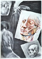 比奈大赛从2020年开始,到现在已经是第四届,每届都体现了人文艺术与医学的有机融合,表达了同学们在成长的各个阶段对医学的领悟。奈特先生就是从医学实践中成长出的一名世界级医学绘图大师,他将自己对于人体构造、基于构造的功能、人的性灵等的理解通过艺术图画的形式表现出来。我们之所以把这个大赛叫做“比奈”大赛,就是希望大家首先要“堪比奈特”,也就是能够接近奈特的水平;然后是“比肩奈特”,和奈特达到同等的水平;最后还要“比过奈特”,能够有更高的造诣和水平,这就是对大家的期望。对于医学生,这是一次难得的喷发出自己的内心对人体的生理、心理、性灵的感悟的机会。我们对比赛特别强调原创,是自己基于真实的对象去画,就像奈特一样,不是照着别人的画临摹出来的,而是基于真实的对象用画来表达。人体解剖为什么不能用VR(虚拟现实)来代替?为什么一定要在遗体(大体老师)上学习解剖?因为只有在真实的人体上,在对他的质感、对他在一般规律内的一致性和基于个性的差异性的理解上,才能够使你成为了悟人体的好医生。你们知道甲状腺上中下动脉都会有变异,但每个人都不尽相同,变化各异。这种基于真实世界的观察,就是比奈大赛所强调和崇奉的。在此也提示我们越来越多的参与比奈大赛的同学们,一定要基于真实的观察和内心的感悟来创作,这样才能勾画出内心的对医学的深刻的理解,这种理解可包括对健康的四大涵义:分别是生理、心理、社会、环境健康,并通过这些作品体现出来。艺术是无以名状的,难于表达的,没有逻辑,没有方程,没有那么多参数,只有用艺术的方式才能表达得出来。医学院校一直强调人文,人文就是在自然科学和社会科学之外的,存乎一心的、约定俗成的、感悟性的东西,而艺术的形式,包括我们今天重点展现的绘画的形式,就是其中最突出的、最经典的、最富于张力和表现力的表达方式之一。希望同学们充分在这个平台上,用艺术表达对生命本质的认知。