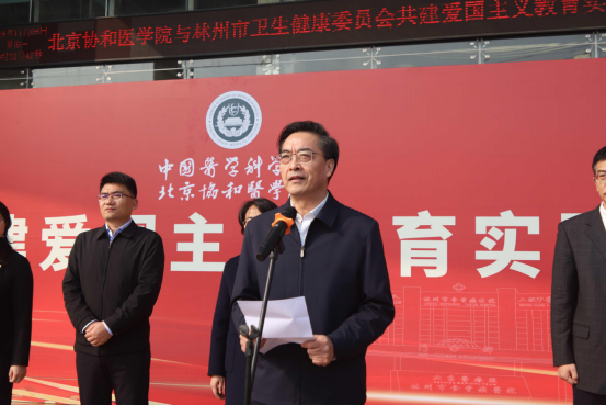 林州市食管癌医院是继贵州图云关抗战纪念园、侵华日军第七三一部队罪证陈列馆之后,我校与地方共建的又一个爱国主义教育实践基地。未来,协和与林州将以基地建设为新起点,从丰富爱国主义教育内涵、推动医学研究与防治创新、传承弘扬宝贵精神财富等方面深化合作,让爱国主义教育更接地气、入人心,融入医学生的日常生活,厚植医学生的家国情怀。同时,双方将持续合作挖掘北京医疗队精神和红旗渠精神的深刻内涵,激励更多医学工作者和青年学子以坚韧不拔之志,勇攀医学高峰,共同为我国医学事业的长远发展和人民群众的健康福祉不懈奋斗,书写出更加辉煌灿烂的崭新篇章。