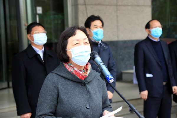肿瘤医院刘芝华副院长代表所院发言,她说,“检测队员们代表院校科研工作者和广大协和人冲锋到一线,向国家交出了一份圆满的答案,由衷地为大家自豪和骄傲,欢迎大家平安回来。”