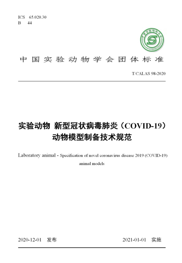 此外,由动研所编制的与该文件配套的团体标准《实验动物新型冠状病毒肺炎(COVID-19)动物模型制备技术规范》(标准号:T/CALAS 98-2020)规定了模型制备过程各环节的技术操作规范,已于2020年12月1日由中国实验动物学会正式发布,2021年1月1日开始实施。