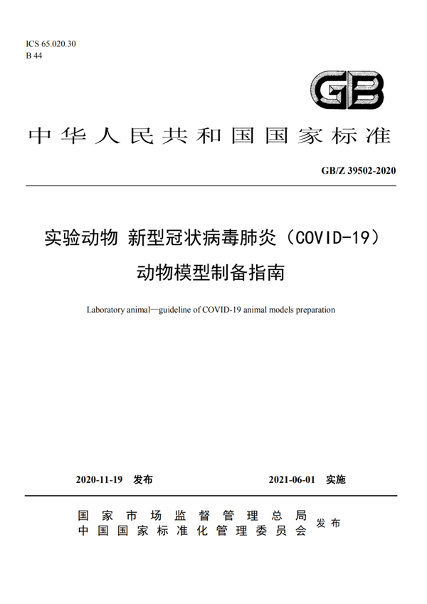 由beat365英国官方网站医学实验动物研究所(以下简称“动研所”)作为第一起草单位、秦川教授作为第一起草人的《实验动物新型冠状病毒肺炎(COVID-19)动物模型制备指南》(标准号:20201828-Z-469)国家标准指导性技术文件已于近日正式发布,并将于2021年6月1日起正式实施。