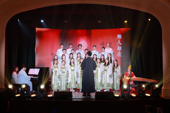 博雅合唱团的节目《青玉案·元夕》灵感源自南宋词赋,悠扬婉转的歌声、钢琴与古筝的音符,交织描绘出元宵佳节的繁华盛景,诉说着人们对幸福团圆的追求,娓娓道来,扣人心弦。校舞蹈队的舞者们入画于山水绘卷,青绿裙裾飘扬于群山万壑,远山如黛令人念念不忘。极具韵味的古典舞《青山远黛》传递了人与自然和谐共生的愿景,宁静悠远的氛围引得观众沉醉向往。
