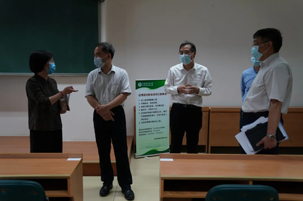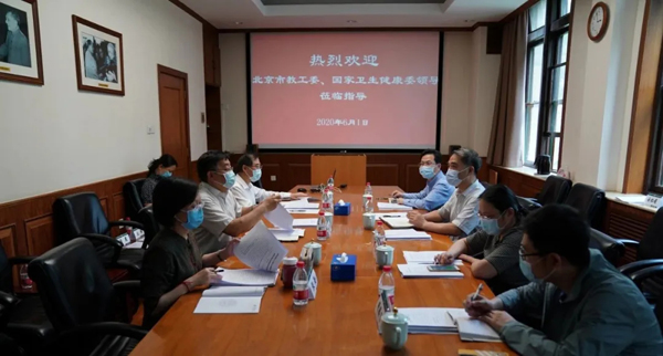6月1日下午,北京市委教育工委副书记李军锋,国家卫生健康委科教司副司长陈昕煜,北京市委教育工委安稳处处长王建辉、安稳处干部隋腾飞及驻校联络员安红娟等到我校调研返校复课疫情防控准备工作。李青副院校长、王云峰副书记及张勤副院校长出席会议。