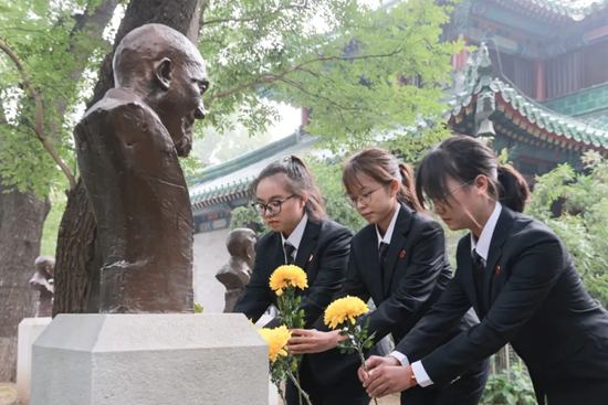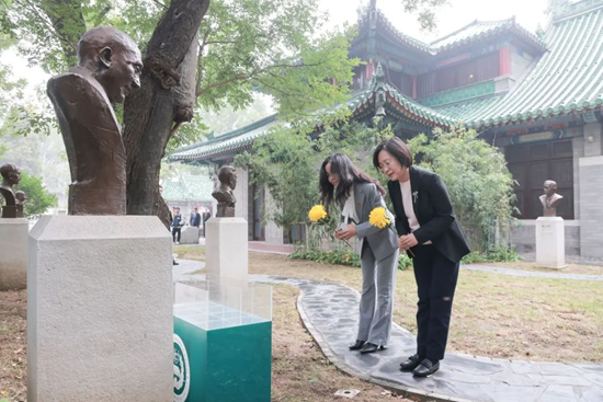 在合影结束后,两校领导与2023级“协和班”全体同学共同瞻仰了两校共同的校长——李宗恩教授的雕像,并向其敬献鲜花,以表追思。