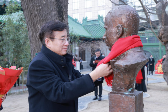 2025年1月23日上午,院校新春致敬崇奉先贤仪式在协和医学院壹号礼堂西庭举行。沿着蜿蜒的仰径,院校领导为九位已故历任校长、院长雕像拂去旧尘,敬系围巾,礼献鲜花。院校长王辰院士代表师生致辞,仪式由院校党委书记邓海华主持。