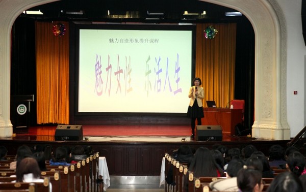讲座由美莱国际形象设计集团执行董事、北京服装学院王小灿教授主讲。讲座中,王老师结合时代特点和现实需求,对女性形象和礼仪进行深入浅出的讲解,从不同的角度诠释女性如何在外在形象与内在品质完美结合。在互动环节中,王教授还邀请在场女同志上台具体指导化妆、仪表修饰;丝巾系法及服装搭配;高雅站姿、身材塑造等示范。
