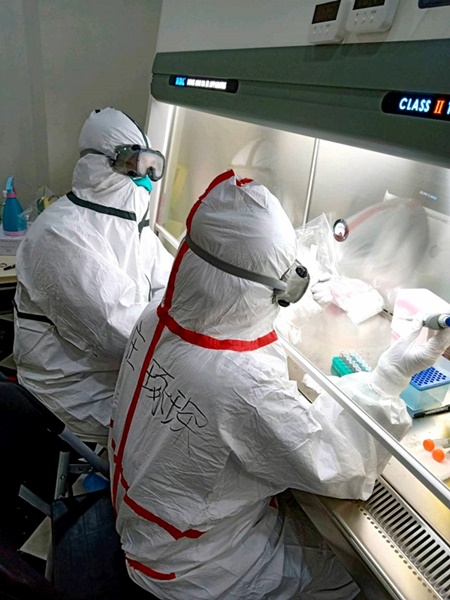 我们承担武汉客厅方舱医院患者的核酸检测任务,在完成了前期实验室建设和检测方案规划后,检测人员分成了两个小队,轮换开展检测工作,我被分到了第二检测组。尽管队员们都来自院校的不同单位,之前互不相识,但为了共同的心愿走在了一起,相互配合,一起努力。