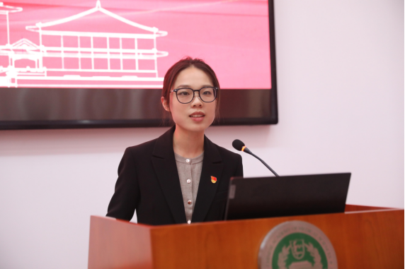 院校纪委“廉风清心”党纪学习教育宣讲团陈梦雪同志进行现场宣讲,讲述了政治纪律的统领作用和严明政治纪律的必要性,对《中国共产党纪律处分条例》进行解读,选取违纪典型案例展开分析,分享感悟,积极发挥了院校宣讲人才队伍优势,为演讲比赛选手做出榜样。