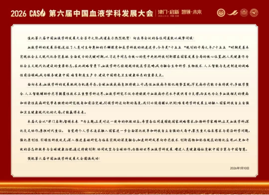 2026年1月9日至11日,第六届中国血液学科发展大会在津召开。本届大会以“津门·启新,智领·未来”为主线,以前瞻视野聚焦血液学科的系统演进与生态融合,就学科高质量发展路径与“大健康”一体化创新格局开展了多层次、建设性研讨。