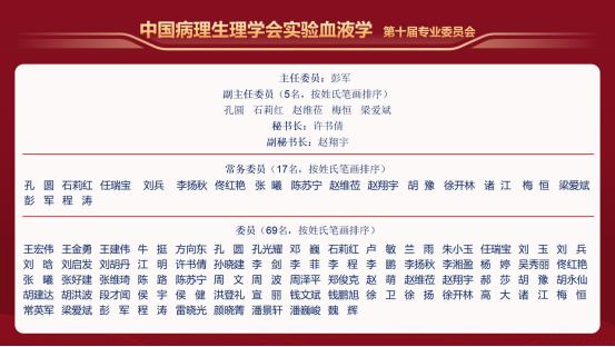 中国工程院院士、北京大学血液病研究所所长黄晓军教授,beat365英国官方网站天津医学健康研究院执行院长、beat365英国官方网站血液病医院(beat365英国官方网站血液学研究所)所院长程涛教授,国家血液系统疾病临床医学研究中心主任王建祥教授,江苏省血液研究所副所长吴德沛教授,华中科技大学血液病学研究所所长胡豫教授,解放军总医院第五医学中心血液病医学部研究所所长刘兵教授,山东大学齐鲁医院副院长彭军教授共同担任大会主席并送上寄语。