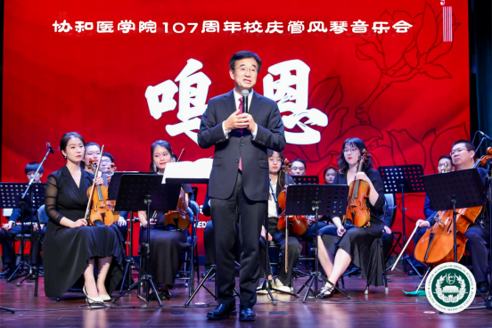 王辰院校长在现场致辞中指出,校友们很鼓舞于协和管风琴的修复复鸣,应当说,这台琴奏响的时候,整个协和医学院壹号礼堂都被激活,被赋予了勃勃生机和不朽灵魂。管风琴奏鸣音强烈的艺术穿透力,使人们内心深处勃发岀情感共鸣与精神力量。继管风琴复鸣之后,经精细工作,协和又一件具有标识性的艺术重器——百年“雅健”钢琴,业已修复,奏响可待。医务人员应有的一项重要素养是懂得音乐,那是一种无以名状的心灵感悟力。希望每年的这场校庆音乐会能成为大家的心灵盛宴。