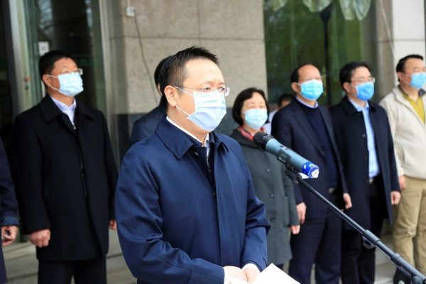 院校长王辰院士作总结讲话。他说,“今天是特别高兴的日子,检测队是院校援鄂的主力,终于宣告圆满完成任务,平安健康回家,回归社会和单位,重启常态工作。”他特别感谢检测队能真正替国家、为民众解决困难,在一线开展了大量卓有成效的检测工作,为武汉战“疫”胜利发挥了重要作用。