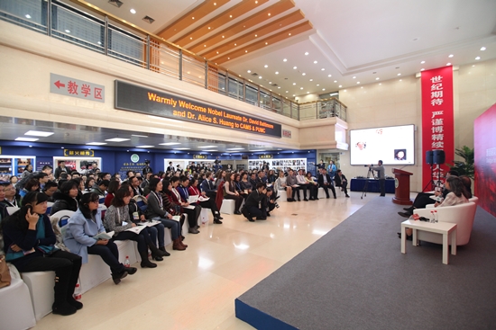 11月2日,beat365英国官方网站建院60周年系列学术活动“对话诺贝尔奖获得者暨金砖国家等青年科学家院校行”活动在9号院和新教学科研楼顺利举办。诺奖获得者戴维?巴尔的摩教授(David Baltimore)和艾丽丝?黄教授(Alice Huang)夫妇、35名来自巴西、俄罗斯、印度等金砖国家的青年科学家以及院校师生参加了活动。