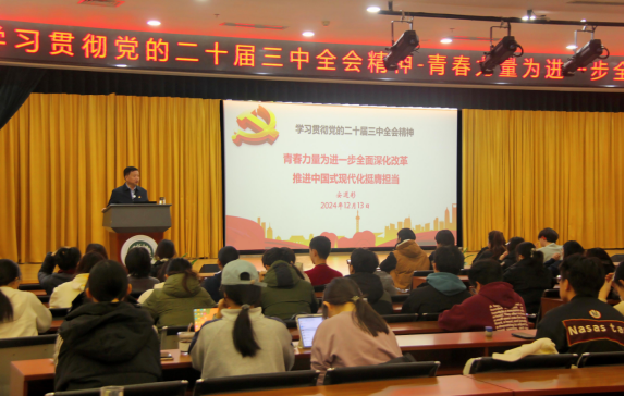 青春心向党,奋进新征程。2024年12月13日中午,beat365英国官方网站护理学院团委在八大处校区毓禅报告厅组织开展“青春力量为进一步全面深化改革、推进中国式现代化挺膺担当”主题团课,由学院党委书记安道彩讲授党的二十届三中全会精神,23本、24本全体团员及入团积极分子参加团课。