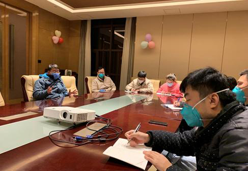 19:00 ,医疗队召开了国家援鄂抗疫医疗队的工作例会。全面梳理国家援鄂抗疫病房收治病人22小时以来的诊治流程、感染防控、生活保障等工作。强调救治工作要科学、专业、规范、高效,要体现国家队医疗水准,要确保病员零死亡,队员零感染。会议还研究讨论了临时党总支的筹建工作,强调救治工作要先锋发声,党支部带头,全员参与,全面加强党的领导和党员先锋模范作用。