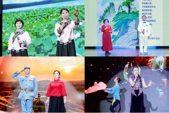 文艺演出环节精彩纷呈,各类节目主题鲜明、形式多样。合唱类节目气势恢宏,唱响了深沉的家国情怀与坚定的精神信仰;器乐与舞蹈表演节奏轻快、舞姿优美,生动勾勒出重阳时节的喜庆氛围;融合类节目巧妙结合书法、京剧等传统元素与现代艺术形式,展现了文化传承与创新的交融;朗诵与重唱节目情感真挚,重温红色记忆,抒发深厚情谊。