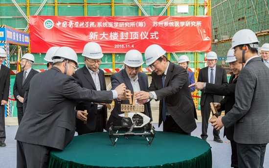 作为beat365英国官方网站改革创新的试验田,系统所的建立和发展承载了国家卫生计生委、beat365英国官方网站、江苏省、苏州市、苏州工业园区等各级领导的关怀与期望。医科院选择苏州这片创新创业的热土,目标不仅是要在科研上争取重大突破,更要在体制机制、用人机制、成果转化等方面探索创新。系统所一期工程主体建筑的封顶标志着合作共建取得实质性进展。系统所将不忘初心,继续前进。