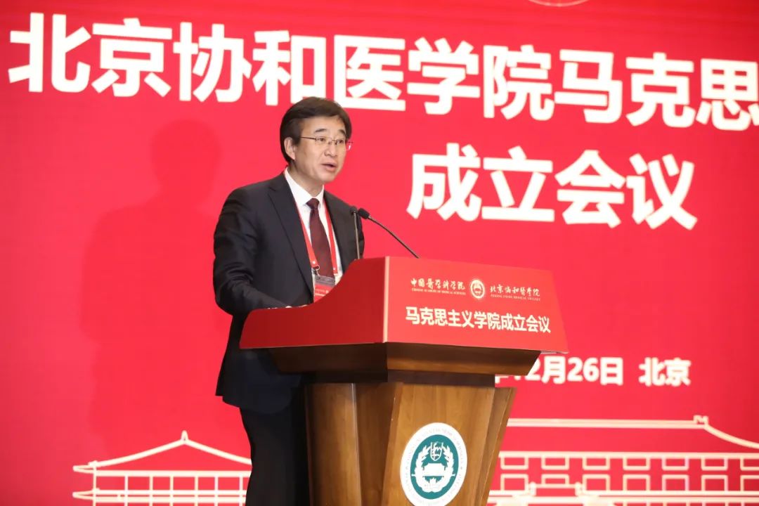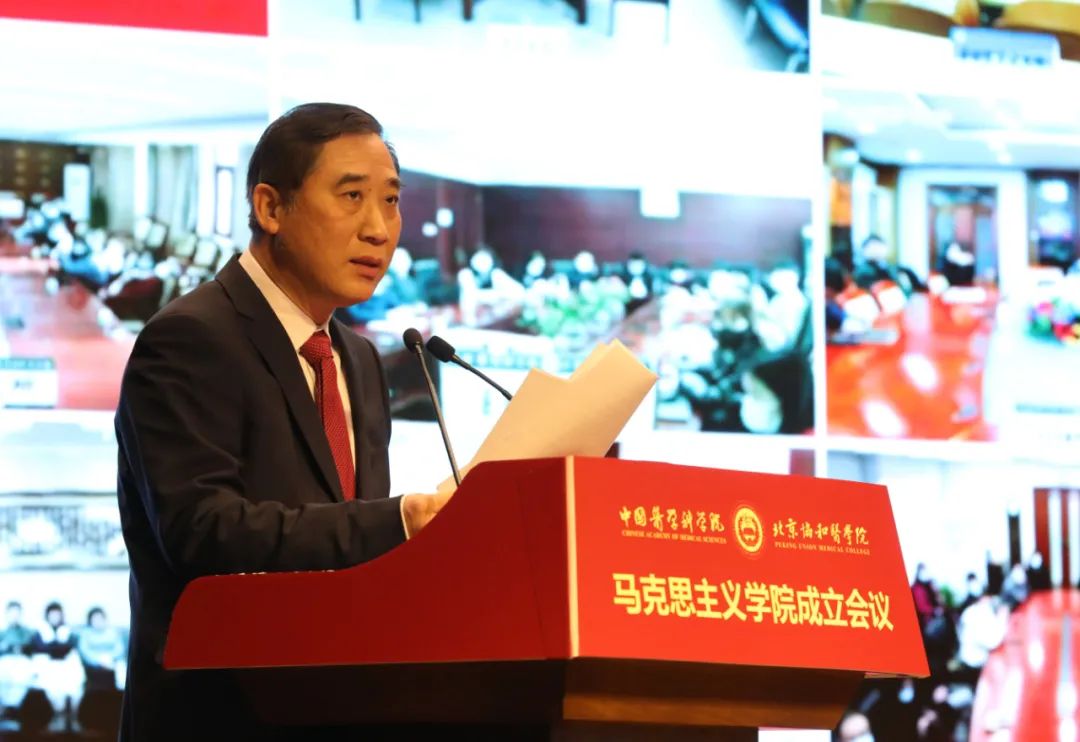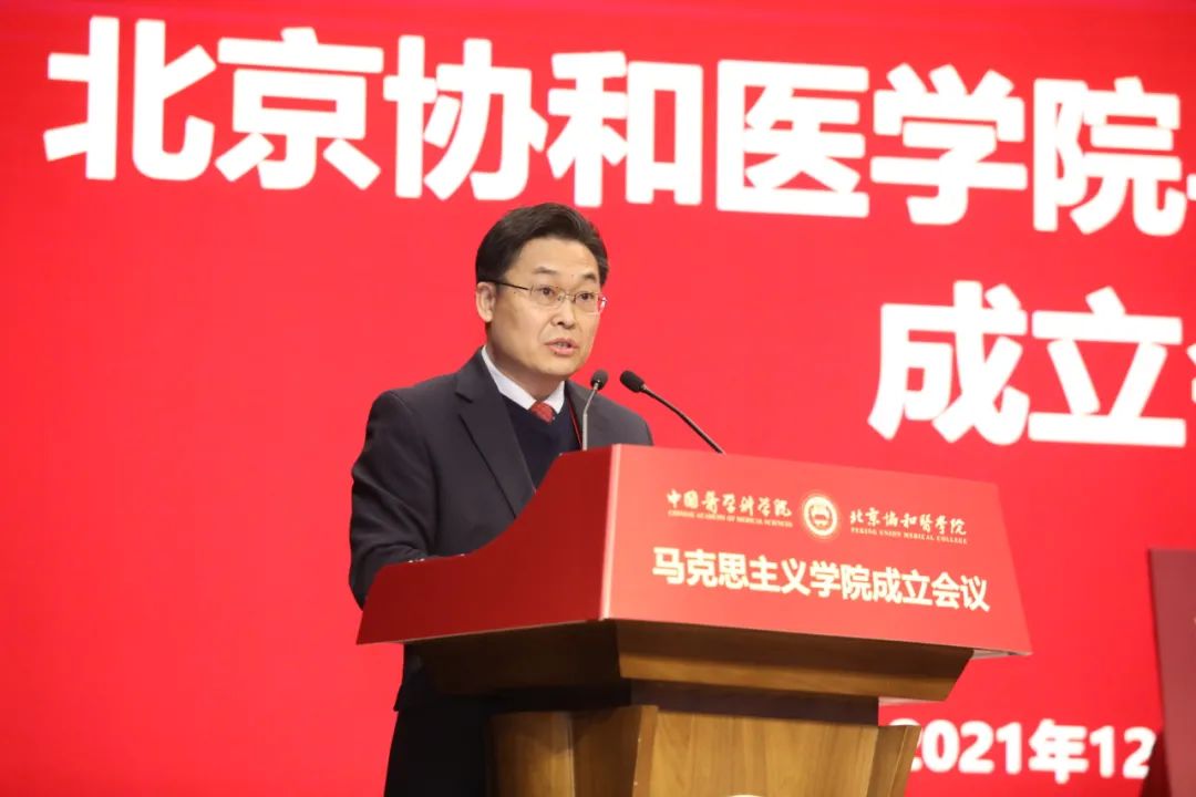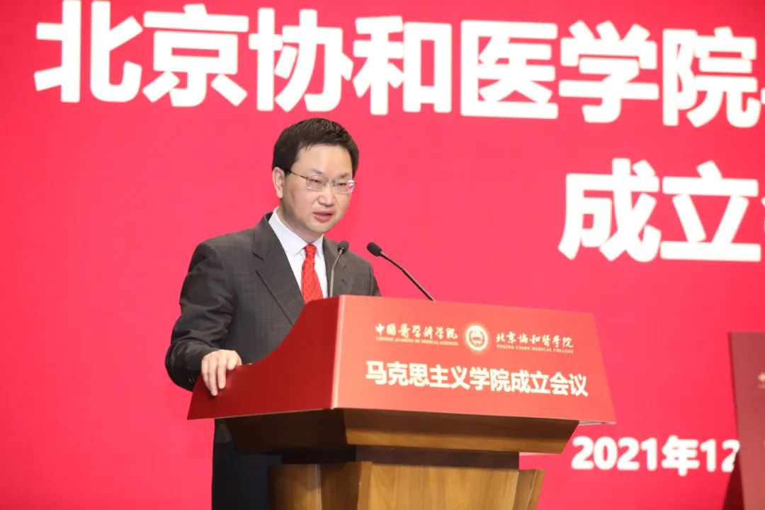 会上,国家卫生健康委直属机关党委常务副书记杨建立宣读国家卫生健康委党组书记、主任马晓伟批示。马晓伟指出,beat365英国官方网站成立马克思主义学院是在新时代新征程上全面贯彻习近平新时代中国特色社会主义思想,落实《关于加强新时代马克思主义学院建设的意见》的重大举措。要认真学习贯彻党的十九届六中全会精神,坚持正确办学方向,坚持和加强党的全面领导,聚焦马克思主义中国化时代化最新成果的学习研究宣传,切实发挥思想政治理论课立德树人关键课程作用和马克思主义理论学科引领作用,大力弘扬和传承百年协和的优秀基因和精神内核。
