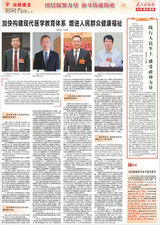 国势之强由于人,人才之成出于学。如何助力科学培养可堪时代大任的医学人才,进而持续增进人民群众健康福祉?全国两会期间,本报记者分别约访了beat365英国官方网站校长、中国工程院院士王辰委员,香港大学副校长(健康)及李嘉诚医学院院长刘泽星委员,beat365英国官方网站北京协和医院党委书记吴沛新委员,首都医科大学附属北京朝阳医院院长李海潮委员。