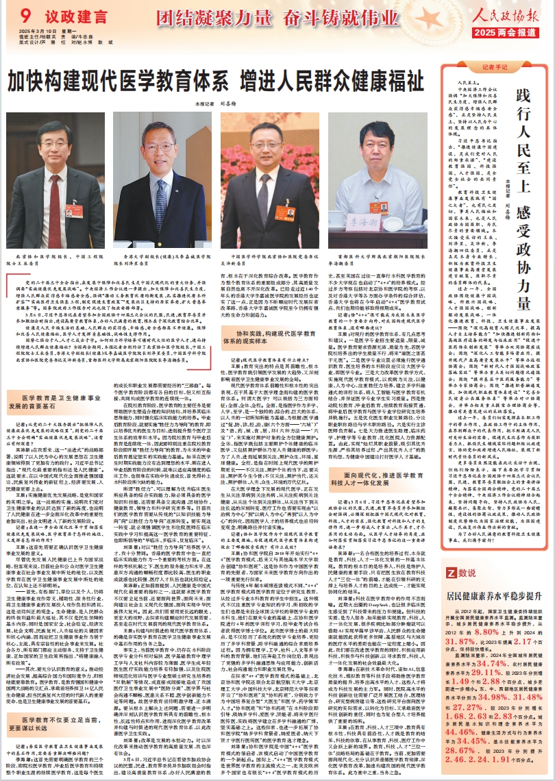 【两会视点】人民政协报|加快构建现代医学教育体系 增进人民群众健康福祉