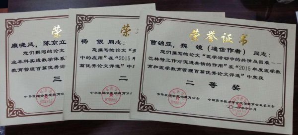 我校三篇论文在“2015 年度医学教育和医学教育管理百篇优秀论文”评选中获奖