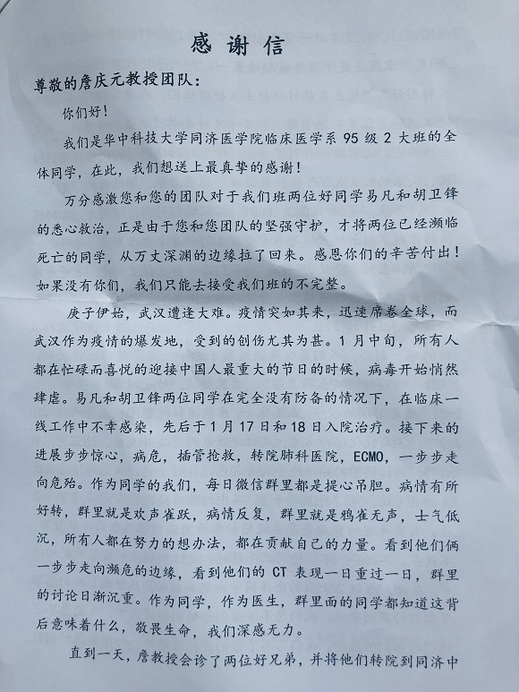 “我们欢呼雀跃,又鸦雀无声;深感无力,又重燃希望……” ——这封感谢信讲述了生命最难也是最美的重生